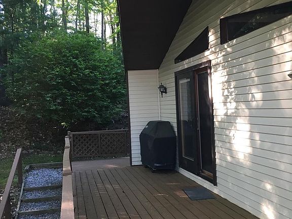 Welcome home to this well maintained, move in ready, secluded 3 bedroom 2 bath raised ranch home. Paved driveway, ample off street parking. 1 car built in garage. Situated on a private, wooded 2 acre lot. Mature landscaping. Pasture views. Finished lower level family room with pellet stove and a full bath/laundry room. Open floor plan for the living, dining, and kitchen area with vaulted ceilings. Oak kitchen with breakfast bar. Large wrap around deck and lower level covered paver patio area. 3 generously sized bedrooms on the main level each with closet space and an updated full bath with large garden tub and shower. There is a large board and batten shed for all of your storage needs. On site well and septic. Blue Mountain schools.
