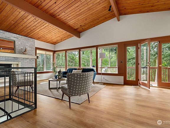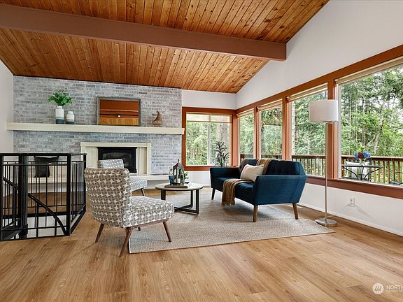 Escape to your island sanctuary on 1.5± wooded acres with 2,750+ sqft of beautifully updated living space. New hardwood laminate floors & freshly painted interior on the main level, where exposed wood ceilings & a wall of windows create an inviting atmosphere. The open concept living space & expansive deck is perfect for relaxation & entertaining. The lower level, with its own kitchen, 3/4 bath, bonus room, & large rec room, has a private entrance & fully fenced lower deck, ideal for rental income potential, & could be remodeled to include a primary suite. Wired generator on site. Near public beach access and S Whidbey State Park, this home blends serene privacy with endless possibilities for adventure, comfort, & investment opportunities.