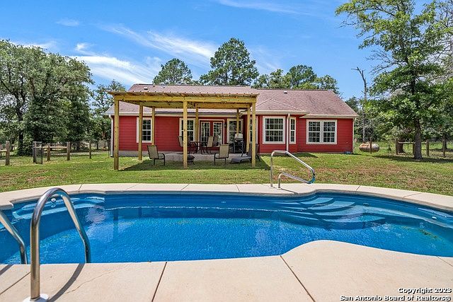 COUNTRY OASIS!! Escape to this beautiful home on 15+/- acres. Recently updated in 2019, the inside of the home is bright and airy. Walking in the front door you are greeted with a cathedral ceiling spanning the living room that is open to the dining room and flows into the kitchen. The kitchen is well appointed with built-in oven & microwave, smooth cooktop, walk-in pantry, peninsula with breakfast bar, granite countertops, plenty of cabinets and a breakfast room that looks out into your backyard and pool. Conveniently located in the hallway across from the kitchen is the laundry with room for a freezer should you desire. The master retreat is full with natural light. The roomy en suite has ample counter space, a large walk-in closet and standup shower with a built-in seat. On the other side of the house are two additional bedrooms. The front room has a vaulted ceiling and beautiful palladian window. The third room has a view of the backyard, and the second full bath is between the two. There is easy to care for, wood-style vinyl plank flooring throughout the home, as well as ceiling fans. Enjoy days and nights on the covered back patio, steps from the in-ground pool. Additionally, the detached garage is equipped with a full bath, it's own water heater and its all metal on a slab with multiple windows. There are beautiful, mature trees surrounding the home with peaceful country views from every window. Additional details include: 2 electric meters, recent hot water tank/pan, disposal, well pressure switch, pool pump, sand filter, pool timer. Come see this home on 15+/- acres before it goes! This is THE ONE!
