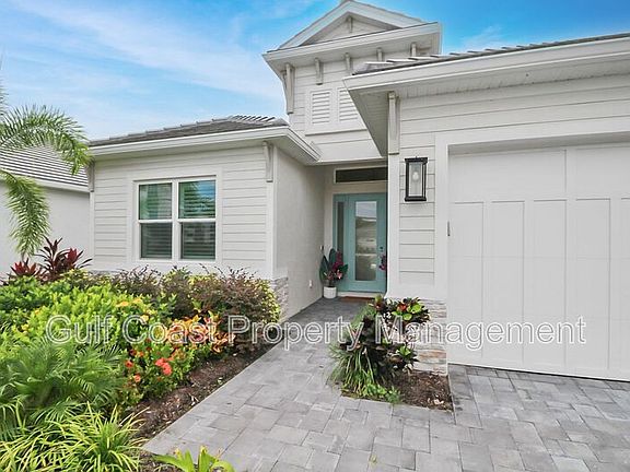 Annual rental available for immediate move-in, located in the exclusive, gated community of Watercolor Place. Step into refined coastal living with this stunning, custom-designed home offering 3 bedrooms, 2.5 bathrooms and 2,358 square feet of thoughtfully crafted living space. Designed with care and upgraded with over $180,000 in high-end finishes and structural enhancements, every detail of this home reflects both luxury and comfort. The chef's kitchen is a true showstopper, featuring an oversized gas cooktop with a sleek range hood, a built-in wall oven and microwave, a custom glass backsplash, and quartz countertops that make both cooking and entertaining a pleasure. The extended primary suite serves as your private retreat, complete with French doors, two large walk-in closets, and a spa-style ensuite featuring a soaking tub and an oversized walk-in shower. Two additional spacious bedrooms and a versatile home office or den provide flexible space for guests or remote work. Standout upgrades include wide-plank luxury vinyl flooring, elegant plantation shutters, and impact-resistant windows that fill the home with natural light while offering added security. The oversized garage has been extended by four feet, providing valuable storage and convenience. Outdoors, an extended lanai overlooks a beautiful water view with a fully fenced yard, ideal for relaxing, entertaining, or giving your favorite furry friend room to play. Just steps away, Watercolor Place's exclusive amenities center offers a beach-entry resort-style pool, cabanas, an outdoor kitchen and grill area, a fully equipped fitness center, and a welcoming clubhouse. This prime location places you minutes from Lakewood Ranch, University Town Center, world-class golf, restaurants, medical facilities, and the white-sand beaches of the Gulf Coast. With quick access to I-75, SRQ Airport, Tampa, St. Pete, and Sarasota, everything you need is within easy reach. Spectrum high-speed internet, HD cable TV, lawn care, irrigation, pest control, and full access to community amenities are all included in the rental rate. Don't miss your chance to live in one of the area's most sought-after communities.