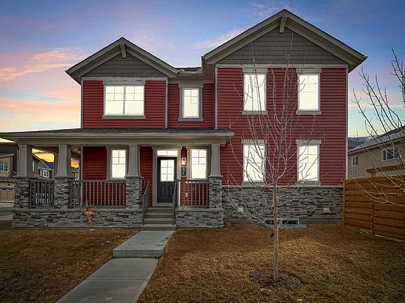 A Charming and beautifully maintained 3-bedroom, 2.5-bathroom home nestled in the heart of the desirable Carrington community. Situated on a spacious corner lot, this stylish 2-storey property boasts a modern open-concept layout, featuring a contemporary kitchen with a walk-in pantry, a cozy living room with a fireplace, and an upstairs loft perfect for additional living space or a home office. The upper level also includes a convenient laundry area and a spacious primary suite complete with a walk-in closet and a 4-piece ensuite. Designed with both comfort and functionality in mind, this home offers an attached double garage, a mudroom with built-in storage, a welcoming front porch, and large windows that flood the space with natural light. The exterior showcases elegant stone accents, adding to its curb appeal. Ideally located close to parks, schools, and scenic green pathways, it’s just minutes away from local amenities, with quick access to major routes like Stoney Trail. Families will love the proximity to Carrington Skate Spot & Playground. Whether you're a growing family, a first-time homebuyer, or an investor, this property truly checks all the boxes. Don’t miss the opportunity to call this inviting Carrington residence your new home!