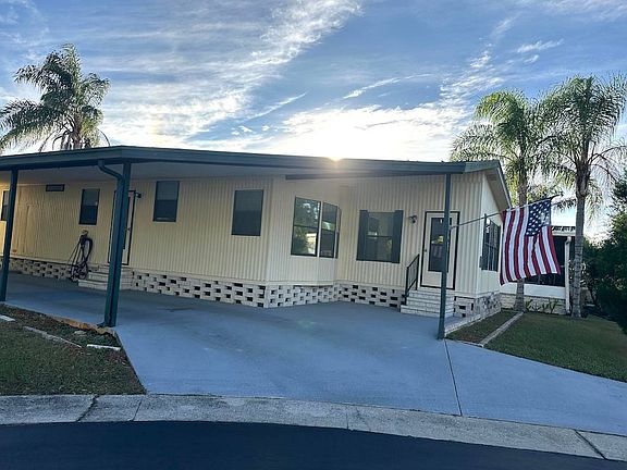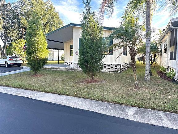 THIS CHARMING 2-BEDROOM, 2-BATHROOM MOBILE HOME OFFERS BOTH COMFORT AND VERSATILITY! Featuring a bright sun room that can easily be transformed into a third bedroom or bonus space. Nestled on a quiet cul-de-sac corner lot, the home is surrounded by mature trees that provide natural privacy and shade, creating a peaceful retreat. Inside, you'll find updated laminate flooring throughout and a spacious layout with a large living room perfect for relaxing or entertaining. The quaint eat-in kitchen includes a built-in desk for convenience, while the formal dining room offers plenty of space for gatherings. With its inviting atmosphere, flexible floor plan, and serene setting, this home is a wonderful place to settle in and enjoy. **Home is being sold furnished.** Highland Village is a 55+ community located in south Lakeland, FL, with numerous waterfront properties. Highland Village has so much to offer! Amenities include pool, fitness center, library, community room, horseshoes, shuffleboard courts, fishing dock and more. Laundry facilities are also available. Up to two pets, under 40lbs, with breed restrictions, allowed. Within minutes of shopping, restaurants, and entertainment. 80/20 rule allows for residents to be 45+. Rentals allowed. Motorcycles allowed. Lot Rent is $1054 per month and includes water, sewer, trash, and tree maintenance. Measurements are L x W KITCHEN: 9 x 10 Laminate Flooring Window Coverings Standard Lighting Ceiling Fan with Light Refrigerator - Kenmore with Ice Maker Range - Kenmore with Vent Hood Pantry(s) - 1 Eat-in Area: 3 x 10 - Built-in Desk LIVING ROOM: 16 x 13 Laminate Flooring Window Coverings DINING ROOM: 9 x 10 Laminate Flooring Window Coverings Ceiling Fan with Light Built-in Buffet MAIN BATH: 4 x 8 Laminate Flooring Single Sink Tub-Shower Medicine Cabinet PRIMARY BEDROOM: 11 x 15 Laminate Flooring Window Coverings Ceiling Fan with Light Closet: Standard PRIMARY BATHROOM: 8 x 4 Laminate Flooring Single Sink Walk-in Shower Medicine Cabinet Linen Storage GUEST BEDROOM: 10 x 12 Laminate Flooring Window Coverings Closet: Standard SUN ROOM: 11 x 12 Laminate Flooring Window Coverings Ceiling Fan with Light Small Closet Located Off: Living Room LAUNDRY: SHED: EXTERIOR: Aluminum Siding Single Pane Windows Gutters Single Carport Roof Type: Metal AC: Trane (2008) COMMUNITY: Clubhouse with Community Room Heated Swimming Pool Horseshoes Billiard Room Fitness Center Shuffleboard Courts Library Laundry Facilities The above information and the condition of this property is not guaranteed. Listing description is based on information provided by the Seller. All measurements are approximate. It is the Buyer's responsibility to confirm condition/age and all measurements. Current fees, current lot rent, rules and regulations, or pass-on costs associated with this home, and particular park should be confirmed, by the Buyer, with the community office. This mobile home is sold in "As Is" condition with no warranties or guarantees.