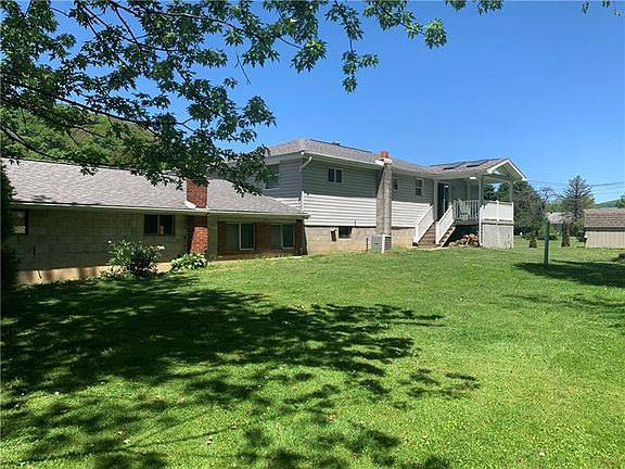 Three bedroom/2.5 bath brick raised ranch situated at the end of a private lane! Home features large living spaces, including family room, living room and sunroom/den. Enjoy relaxing in the spacious family room, which includes pellet stove, or the living room by the wood burning fireplace. Newer Trex deck with skylights overlooks peaceful and private backyard with frog pond. Newer furnace, hot water tank and A/C. Lots of natural light throughout. Large basement is partly finished. Finished area was used as a ceramics studio with kitchenette. A lot of possibilities with this home!