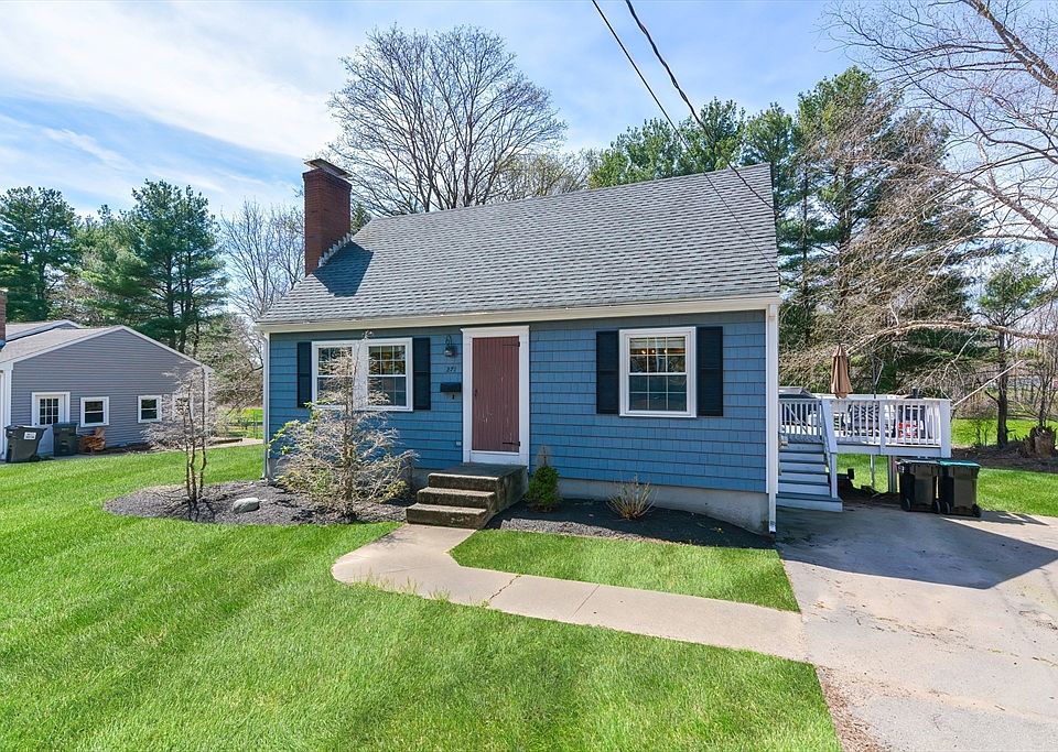 New England Cape style home featuring 3-4 BR's & 1.5 baths. This home offers a traditional floor plan w/open concept. The first floor has a kitchen w/great work space, including an island w/overhang for bar stools, stainless appliances, wine fridge, granite counters and extends into the DR w/chair-rail. Wainscoting is featured in the LR w/FP & ceiling fan, an optional 4th BR or office and half bath. Upstairs consists of a front to back main BR, 2 others BR's and an updated full bath. Hardwood floors are throughout the house. Flexible space in the LL can be used as a FR, workout or craft area or storage. A large storage shed connected to the basement is a huge bonus. Updates include: vinyl siding, windows & roof approx 10 yrs. Side deck 1yr which overlooks a nice backyard perfect for kids play. Hot water heater 1yr and oil tank 3 yrs. Conveniently located, you can walk to town, Tangarini Farm & the HS. Showings begin Friday 4/19, Open Houses both Sat & Sun 11-1pm