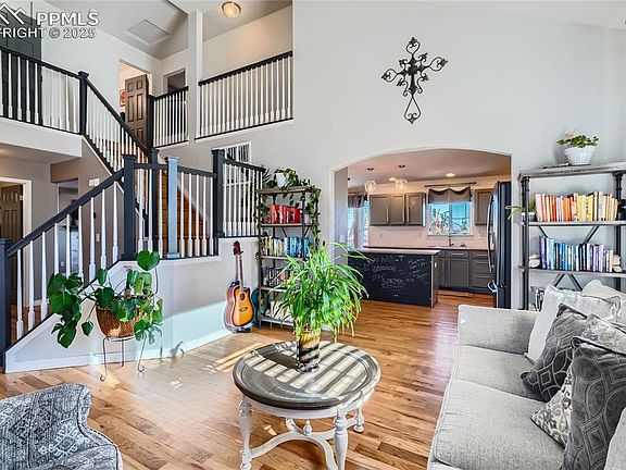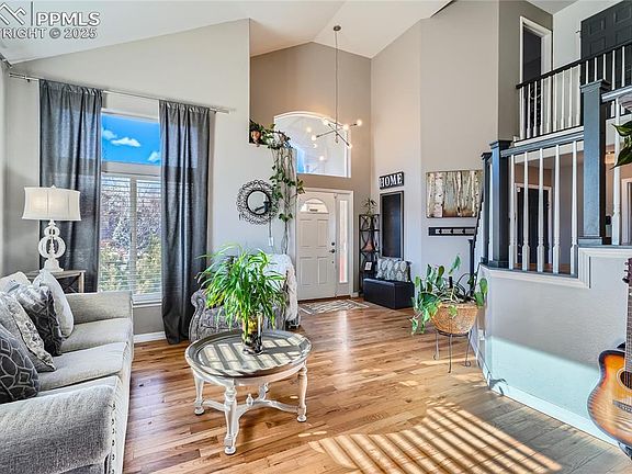 Nestled on the desirable west side of Colorado Springs, this stunning 4-bedroom, 4-bathroom home offers breathtaking views of downtown and a prime location close to Bear Creek Park, the Penrose Event Center, and endless mountain trails. Situated on a spacious 0.2-acre lot with no HOA, this two-story home with a walk-out basement boasts just under 3,000 sq ft of finished living space, including hardwood floors throughout the main and upper levels. The main floor features an open living and dining area that flows seamlessly to a deck overlooking the city. Upstairs, the primary suite is a true retreat with vaulted ceilings, a walk-in closet, and a spa-like bathroom featuring a walk-in shower, rain showerhead, and sauna. Two additional bedrooms upstairs offer stunning city views, perfect for enjoying fireworks year-round. The walk-out basement includes a large family room, a fourth bedroom with a walk-in closet, a full bathroom, and an unfinished space ready for your vision. The backyard is perfect for entertaining or storage with garden beds and room for RV or trailer parking. Minutes from Hwy 24 and I-25, this home offers quick access to Manitou Springs, Garden of the Gods, Old Colorado City, shopping, and schools. With an inviting neighborhood and unbeatable location, this home won’t last long—schedule your showing today!