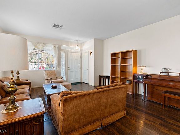 Paid Off $44k Solar Panel System Included!!!!! This terrific home features 6 Large Bedrooms, 3 Bathrooms, Laminate Flooring, Quartz Counters in kitchen with Island, Double Ovens, All appliances included, Family room with Gas Fireplace and Ceiling fan. Huge Primary Bedroom with massive Bathroom, separate Tub/shower, huge walk in closet, all the bedrooms are good size including 1 Bedroom/Bath is on the first floor. Sparkling Pool in rear yard with covered patio and desert landscaping in Gated Henderson neighborhood. Call to see this property before it's gone.