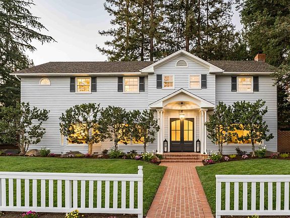 Nestled on a peaceful cul-de-sac on nearly a quarter acre, this completely remodeled (with permits), classic American colonial exudes timeless charm with a lush front garden, brick walkway, and column-framed portico all in a walk to downtown location. Over 3,500 square feet across two sun-filled levels, the refreshed interiors feature hardwood floors, abundant natural light, renovated bathrooms, and updated fixtures. Expansive formal rooms flow to an eat-in kitchen with a brand-new Thermador suite, while a walk-out family room offers an inviting space for everyday living. Five bedrooms include a downstairs guest suite and a primary suite with a flexible-use room. Outside, a covered patio and deck with a built-in fire pit are complemented by a nearby water feature and towering trees for a private retreat. Additional highlights include air conditioning and a two-car garage, just minutes from downtown Los Altos, Shoup Park, Highway 280, and top schools (buyer to verify eligibility).