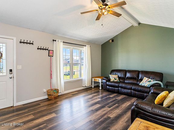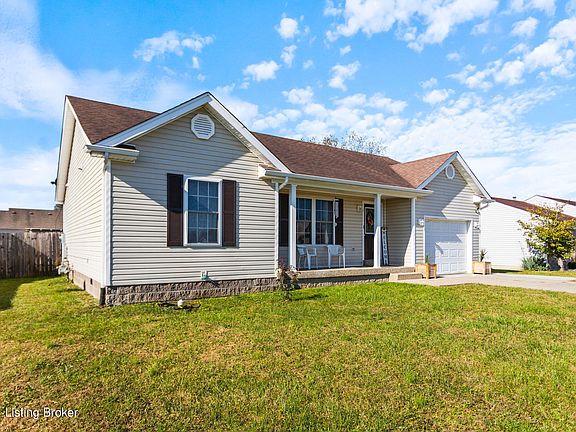 Welcome HOME to this Charming Ranch that offers 3 BR / 2 Full BA with an Attached Garage & Full Fenced Yard ~ Vaulted Great Room ~ Kitchen w/Abundance of Cabinetry w/All Appliances to Remain ~ Dining Area walks out to a Newer Deck ~ Hard Surface Flooring Throughout ~ Primary Bedroom w/Private Full Bath ~ Covered Front Porch ~ Washer & Dryer to Remain ~ Extra Parking Pad ~ SUPER LOCATION in Bullitt County ~ Don't Let This One Pass You By~