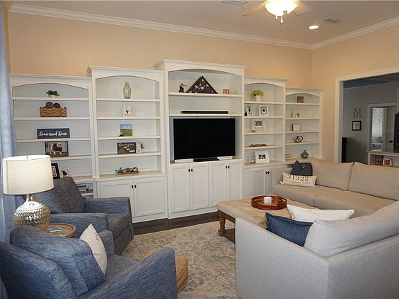 Welcome to this beautifully designed one-level island home that perfectly blends comfort, elegance, and functionality. From the moment you arrive, you’re greeted by lush landscaping, a charming courtyard entry, and a true sense of coastal tranquility. Step inside to a spacious open floor plan where the living room, dining area, and kitchen flow seamlessly together, ideal for entertaining or everyday living. Built-in shelving adds a touch of character, while the bright and airy bonus room offers endless possibilities, a home office, art studio, or cozy retreat. The private primary suite features a spa-like bath with double vanities, a large walk-in shower, and a separate water closet. A custom wood-shelved walk-in closet provides ample space for all your wardrobe essentials. Two additional bedrooms share a full bath with a luxury free standing soaker tub. Out back, enjoy your very own heated saltwater lap pool which sits beneath a covered lanai. Surrounded by lush turf grass for a low-maintenance year-round green backyard perfect for entertaining, morning swims or evening relaxation. The air-conditioned garage includes an oversized walk-in storage closet, making organization easy.