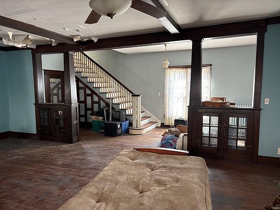Fixer upper! Investors and contractors take note. This foursquare, two story style home is assessed at $147,200. Estate property that needs a roof. Turn of the century home with natural woodwork and craftsman style features. A 20x30 living room with a brick fireplace and wood beam ceilings. Most area have hard wood floors. Up to five bedrooms and two bathrooms. The boiler heat is working.