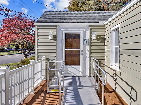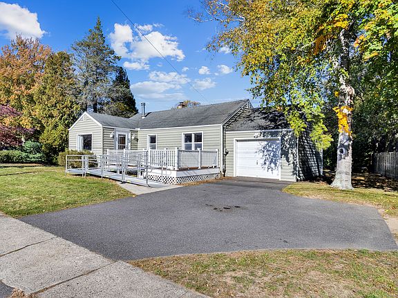 Welcome to 271 West River Street, a charming ranch on a spacious corner lot offering comfort, convenience, and thoughtful updates throughout. Step inside through the handicap-accessible ramp and you'll find a bright open living and dining area featuring hardwood floors, built-in bench cabinets, and a cozy wood-burning fireplace. The kitchen, while a bit dated, offers plenty of room to cook and customize to your liking. The home features a brand-new handicap-accessible bathroom complete with a roll-in shower and a stackable washer and dryer for easy access. A hatch in the bathroom provides entry to the crawl space. There are three bedrooms, one of which was converted from the original garage, giving you flexible options for a guest room, office, or den. Outside, enjoy a level grassy backyard perfect for relaxing or entertaining, with new exterior stairs, siding, and gutters in the back. Additional highlights include central air conditioning and a prime location just minutes from shopping, parks, and highways. This home is perfect for anyone seeking single-level living with accessibility, comfort, and convenience all in one.