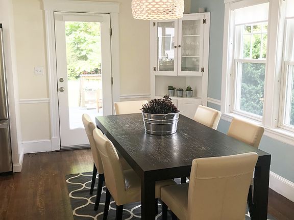 This one will go fast. Fabulous updated home on a large level lot just 0.4 miles from Needham Center and 0.2 miles to Needham Junction Commuter Rail. Renovated, sun-filled first floor features open-concept kitchen with stainless steel appliances and granite counters. First floor has central air, a half-bath, a living room with a rebuilt fireplace, Hardwood floors throughout. Screened in front porch and a Trex back deck overlooking a large fenced in yard. Second floor features 3 bedrooms, 2 full baths, including master bath with jacuzzi tub. Third floor offers large bonus area with an office and additional 4th bedroom or living area and playroom . One car detached garage, new driveway, south-facing gardens.