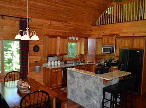 Cozy log cabin in the woods like new the cabin has spacious floor plans with open vaulted ceilings. Stone fireplace in the living room beautiful hardwood flooring. Kitchen has open cabinet space with granite countertops and nice eat in bar area plus dining area, all equipped with stainless appliances. Master bedroom is open with large connecting master bath with walk in shower and whirlpool bathtub. Sheetrock in the additional bedrooms to personalize with color. Large spacious rocking chair porch to enjoy during the day with southern exposure. priced to sell please call to preview show anytime