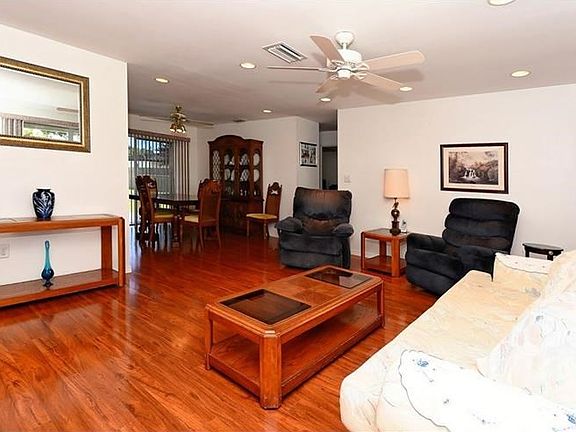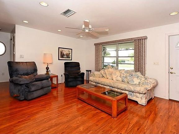 Meticulously maintained split bedroom home with a two car garage in the Hibiscus area! Beautifully updated living room, dining room with recessed lighting, freshly painted and pergo floors. The popcorn finish has been removed and the ceiling has been re-textured/painted. Very efficient home thanks to block construction, updated electric and a new A/C installed in 2010! Ample storage space with large closets. Nice lawn with a mature tree and plenty of room to add a pool. Great neighborhood, close to schools, shopping, restaurants and world famous beaches! Pride in ownership is evident, you must see to appreciate!