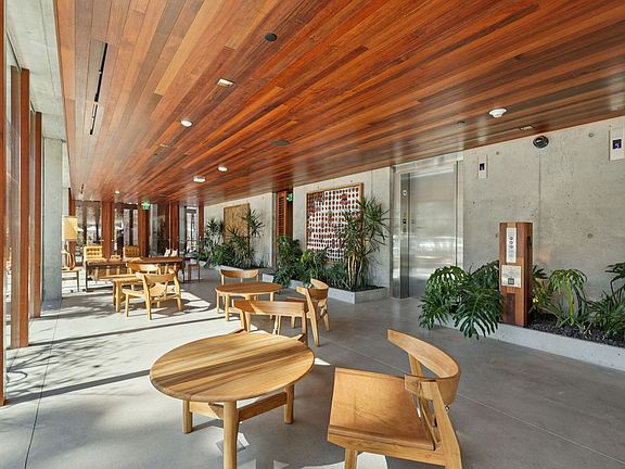 These light-filled paths lead to lush gatherings spaces and create a sense of community throughout. At street level, Communal Coffee anchors the space, offering residents and