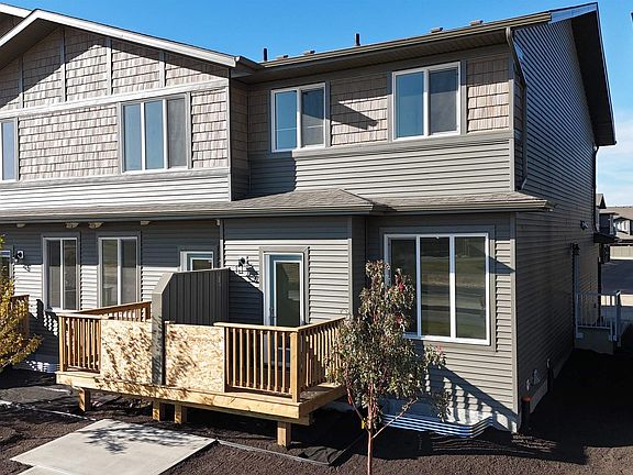 Step into this brand new 3 bedroom, 2.5 bathroom corner townhouse with double attached car garage offering comfort, space, and style! The main floor welcomes you with a beautiful kitchen featuring island seating, modern finishes, alongside open dining space and bright living area. A half bath, access to garage, and walkout to a finished backyard deck complete the level. Upstairs, enjoy a primary suite with 4pc ensuite bath and walk-in closet, while two additional bedrooms share a 4pc bath, and a laundry closet for convenience. The unfinished basement provides plenty of potential for future development. Perfectly located near schools, children's playground, dog park, public transit, grocery stores, everyday shopping and The Orchards Centre with popular spots like Starbucks, Subway, Dairy Queen, Shoppers, Co-op and more. Just 20 minutes from the YEG airport and Premium Outlet Mall, with quick routes to Highway 2 and Anthony Henday. Move-in ready and waiting for you!