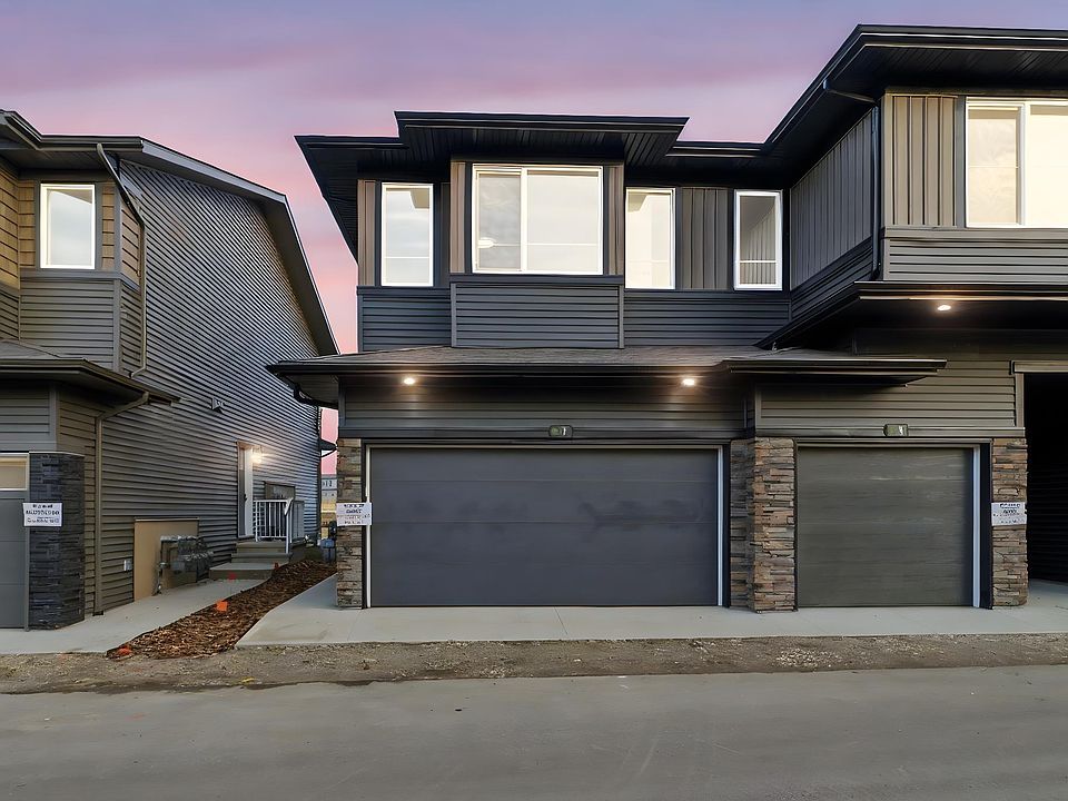 Welcome to this BRAND-NEW stylish END UNIT townhouse with a DOUBLE ATTACHED GARAGE in The Orchards, South Edmonton. Featuring 3 bedrooms, 2.5 bathrooms, and quartz countertops throughout, this home blends comfort and modern design. The main floor offers a bright open layout with a contemporary kitchen with island seating, dining area, living room, half bath, and access to a finished backyard deck. Upstairs, the primary suite includes a walk-in closet and 4pc ensuite, plus two additional bedrooms, a 4pc bath, and convenient laundry. The unfinished basement offers potential for future development. Located in a family-friendly community close to schools, parks, transit, grocery stores, and The Orchards Centre with popular shops and dining. Only 20 minutes to the airport and Premium Outlet Mall, with quick access to Hwy 2 and the Anthony Henday. Move-in ready!