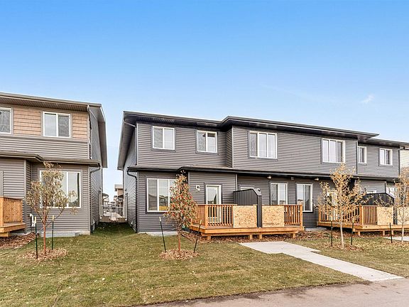 Modern Corner Townhome | Double Attached Garage | Prime Location !! Step into this brand new 3 bedroom, 2.5 bathroom corner townhouse offering the perfect blend of comfort, space, and style! The open main floor features a sleek kitchen with island seating, modern finishes, an inviting dining space, and a bright living area — ideal for family time or entertaining. A half bath, garage access, and a walkout to a finished backyard deck complete the level.Upstairs, the primary suite includes a 4pc ensuite bath and walk-in closet, while two additional bedrooms share a full bath and a convenient upper-floor laundry. The unfinished basement provides endless possibilities for future development or extra storage.Located close to schools, playgrounds, dog parks, grocery stores, and The Orchards Centre — with favourites like Starbucks, Dairy Queen, and Shoppers just 2 minutes away! Enjoy quick access to Anthony Henday, Highway 2, YEG Airport, and Premium Outlet Mall. Move-in ready and waiting for you to call it home!