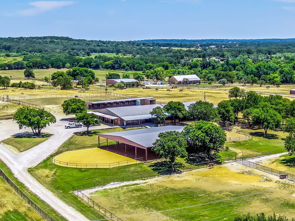One of Parker Counties premier show horse training facilities on almost 36 acres of sandy loam. Completely fenced and cross fenced in mostly pipe and horse safe materials. Show barn and additional stall barn with 25 stalls total. Show barn features, covered walker, office with full bath, double was rack, double door tack room, half bath, lockers, second office and tons of storage. There are two apartments attached, 2 bed, 2 bath and a 2 bed, one bath. The main home, architecturally known as an Acorn Deck Home and is 3,696 sq.ft. 3 bedroom, 4 full bath. Perfectly placed in a position to capture natural light and help with cutting utility bills. The spacious bedrooms are all upper level as well as three baths. Downstairs is home to the huge great room and soring ceilings of the dining room. Kitchen is amazing and completely redone with brick floors, induction cooktop, double oven, large breakfast area and walk-in pantry. There is a large game room, full bath and laundry on main level.