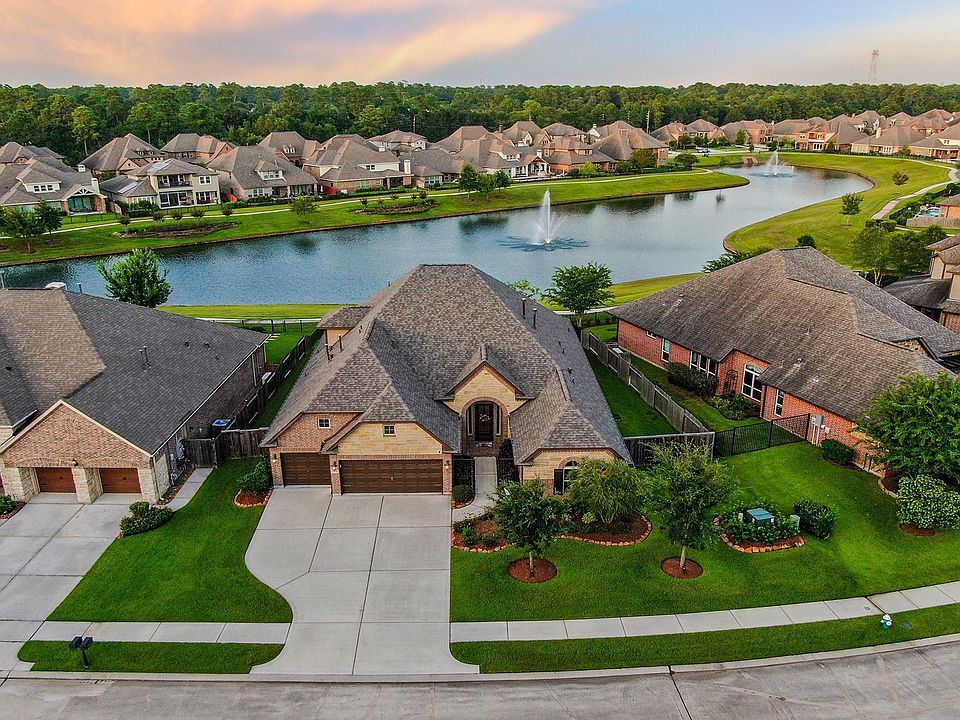 Single Story Living with Upstairs Flex Room! Located in a gated, luxurious resort style community featuring lakeside living, scenic jogging trails & pool. Highly sought after Klein ISD this home is minutes from I45, Grand Prkwy and an easy commute to Downtown, The Woodlands, IAH, and many amenities. 4 bedroom, 4 bath with 3 car garage and tons of luxury options! Relaxing private stone courtyard, rotunda entrance, granite kitchen with double oven, 5 burner cook-top and stunning 42" custom cabinetry, 8 ft interior doors, sliding double doors to private backyard with captivating bulk headed lake views with fountains Upstairs game room + full bath and huge walk in closet, dining with exposed beams, spacious secondary bedroom. 5 Star primary retreat with huge walk in shower, dual sinks with vanity area two closets. Work, Play and Staycation in this beautiful resort atmosphere where you can relax, rejuvenate and be inspired!