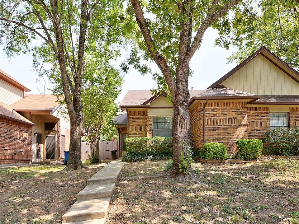 Currently leased to tenant through 7-14-2021. New owner to honor current lease. Cute duplex is well maintained with updated appliances. Highly desirable area in Grapevine-Colleyville schools, close to lots of shopping, and located on a quiet culdesac street. Vaulted ceilings in the family room with a tall brick fireplace and ceramic tile floors. Functional galley kitchen with stainless appliances and refrigerator to stay. Backyard with patio, storage shed, grassy area (great for pets), and covered carport with wood fence and gate. Mature trees and shady lot.