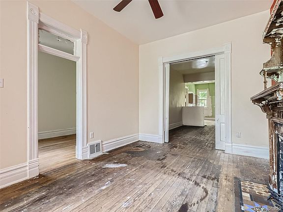 This 1881 Curtis Park Victorian home needs work to shine again. Currently configured at 2 bedrooms/1 bath. The 10 foot ceilings make it seem bigger than it is. The home has a lot of the original historic charm including Victorian style door and window millwork. A wood burning fireplace has the original mantle that could be dramatically restored. Some updating has been done. All appliances included. Newer windows throughout except two front windows. Newer heating system. Some of the electrical and plumbing has been updated. The bathroom has been updated. The backyard is open and per the property's U-RH-2.5 zoning, an Accessory Dwelling Unit is allowed. Close to the 30th & Downing Light Rail Station and all the cool restaurants, nearby shops and bars of Upper Larimer at Five Points and RiNo. A quick bike ride to Coors Field and LoDo. Opportunity is knocking so open this door!