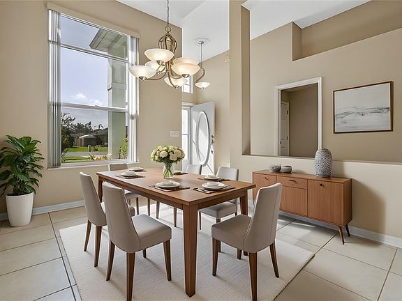Welcome to 2710 Autumn Lane, a spacious retreat in the heart of 44 Gables! On a quiet cul-de-sac street in the desirable 44 Gables neighborhood of Eustis, this beautifully maintained four-bedroom, two-bath home offers a blend of comfort, privacy and convenience. With a generous 2,325 square feet of living space and impressive 11-foot ceilings throughout (and a soaring 13-foot ceiling in the dining room), the home feels bright, open and inviting from the moment you enter. The thoughtful split bedroom floor plan provides privacy for the primary suite, making it ideal for families or guests. The stylish kitchen is equipped with granite countertops, stainless steel appliances and plenty of cabinetry, ideal for everyday meals and entertaining. Go outside to the oversized screened-in back porch, designed for year-round enjoyment. A fully equipped outdoor cooking area, complete with built-in range and oven, makes entertaining effortless. The backyard also features fresh fruit trees, bringing charm and a touch of nature to your daily life. Additional highlights include a brand new Rheem air conditioning unit and a 2017 roof for added peace of mind and an indoor laundry room for convenience. Enjoy being just minutes from downtown Eustis, Mount Dora, shopping, dining and major roadways. With its ideal layout, standout features and unbeatable location, this home offers the lifestyle you've been waiting for. Schedule your private showing today and experience the best of 44 Gables living.