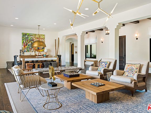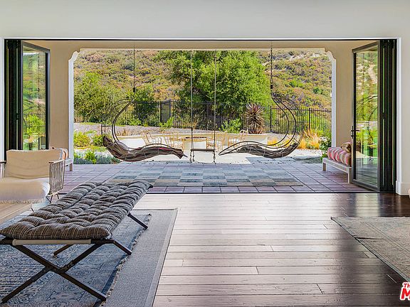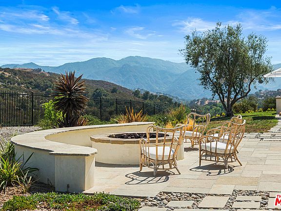 Nestled on nearly 12 acres in a picturesque valley of the scenic and unspoiled Santa Monica Mountains, this equestrian estate combines total privacy and expansive views with gracious indoor-outdoor living. A Wallace Neff-inspired hacienda with refined interior architecture, open floor plan, generous space, high ceilings, large windows, sculptural archways, and wood floors. Features include dramatic living/dining area, deep portico with fireplace, top-of-the-line chef's kitchen, bar, temp-controlled wine room, enormous family room. Six bedrooms include two master suites. Magnificent grounds with guesthouse, saltwater pool, jetted spa, sauna, fire pit, cabana, gym/yoga room, outdoor kitchen with built-in barbecue, covered patios, art studio, fenced vegetable garden. Horse stall, turf soccer field, and playground. A 5-car garage with driveway parking for 20+ cars, plus a smart home automation system. A remarkable estate for private enjoyment and sophisticated entertaining