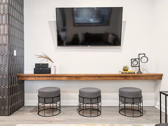 - Exterior features: Barbecue, Billiard Table, Built-in Workstations and Bookshelves, Business Center, Energy-Efficient Appliances, Garages Available, Granite Countertops, Outdoor Closet, Package Receiving, Short Term Lease, Showers, Single Story Building, Theater, Tub in Select Units, Wood-Laminate Flooring
