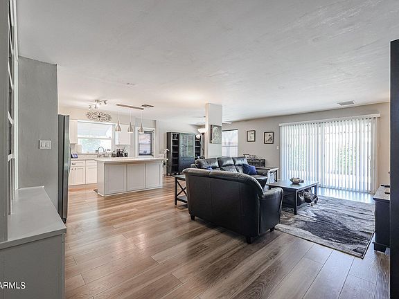 Great Value on this block home with 3 bedrooms and 2 baths. The home was remodeled in 2019 with an open great room floor plan with built in bookcase/storage, Island kitchen with new cabinets, SS appliances, granite counter tops, tiled backsplash, pantry cabinet, gas range/oven and new lighting. Both bathrooms were updated with new flooring, vanities, light fixtures, tub surround, master tiled shower and mirrors. Over sized master bedroom with good size walk in closet. Newer dual pane windows, ceiling fans, newer blinds throughout. Washer/Dryer and Refrigerator are included. Covered patio, block fencing and granite backyard. Convenient location close to Hwy 51. Popular PV schools,