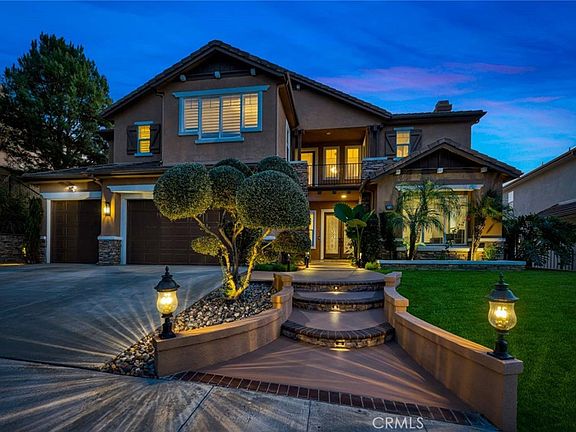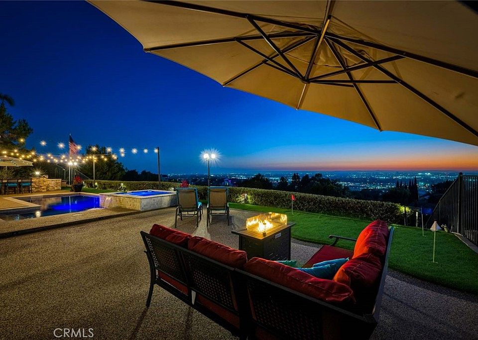 Imagine standing on a hill in Orange County with the entire OC basin laid out at your feet.By day you can see all of the landmarks-Disneyland,the Honda Center, Angels Stadium and more, and on a clear day, you can see Catalina Island and all the way to LA. The show starts when the sun sets and you're treated to magnificent works of art on the horizon.After sunset, the city lights start to shine and sparkle like jewels in a treasure chest. Now imagine this hill is in your own backyard! You enjoy this breathtaking view from the pool and spa, from the outdoor kitchen with barbecue, hibachi grill, pizza oven, refrigerator and bar seating for your friends & family.There are outdoor living areas under the awning and on the corner patio and there's even a putting green, all with a breathtaking view! Your private paradise also includes a magnificent,sprawling 4,345 square foot home! You traverse the hill and arrive at a gated enclave of incredible homes. When arriving at the home, you notice the meticulously manicured landscaping leading to a secluded porch and custom leaded glass double entry doors and a lovely fountain.They open to an elegant foyer with soaring 2 story ceilings and a gorgeous chandelier.To the right is the formal living room with elegant fireplace and the adjacent home office accessed through double doors from the living room or a separate entry door off the front porch.To the left is a formal dining room with ample space for large gatherings.A butler's pantry leads to a gourmet kitchen and breakfast room, both creating a great room with the family room with fireplace.Beyond the family room is an ensuite bedroom with private bath and access to the back and side yards.Rounding out the first floor is a powder room,walk-in pantry & laundry room.Upstairs,the staircase splits with the right side leading to the elegant owner's suite that takes in the magnificent view from indoors or a large balcony.There are 2 huge walk-in closets,an opulent spa style bath with jetted tub and separate shower & an exercise niche.Up the left staircase,there's a bonus room with limitless uses and access to the front balcony.The spacious secondary bedrooms all have big closets and consist of an ensuite bedroom with private bath and a pair of Jack 'n Jill bedrooms that share a bath.There are far too many wonderful things to say and list about this fabulous home.You really need to see it and experience it.Once you do that, you'll never want to leave! Come make it yours!