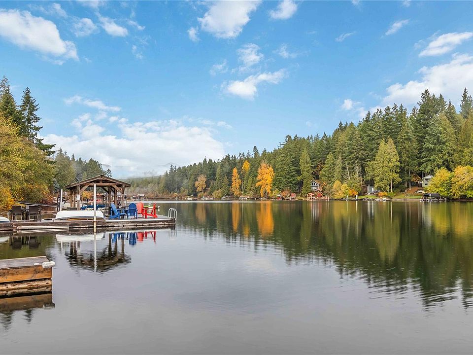 Discover luxury lakefront living on Shawnigan Lake’s coveted West Arm, known for its calm, sheltered waters. This stunning 2021-built home offers 5 bedrooms and 4 bathrooms, designed to showcase sweeping lake views. The main floor features a chef’s kitchen, wine bar, and spacious open-concept living area perfect for entertaining. Lower level includes 2 additional bedrooms, a rec room, and is roughed in for potential suite. Step outside to multiple outdoor seating areas, a large stone fire pit, and a hot tub overlooking the water. The primary suite includes a private deck and spa-inspired ensuite, while the mudroom and oversized garage provide space for lake toys and Seadoos. Enjoy your private dock, the largest private dock on the lake, complete with boat lift and 2 jet ski spots plus a basketball area and putting green for endless recreation. Experience refined lakeside living in one of Shawnigan Lake’s most desirable locations.