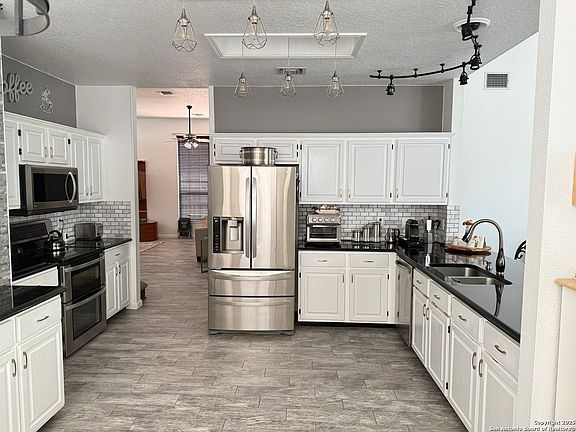 Stunning, beautiful, and immaculate 3-bedroom, 2.5-bath home in the highly desirable Encino Forest subdivision, offering 2,595 sq. ft. of open living space with soaring ceilings and abundant natural light. Attractive curb appeal with mature trees welcomes you to a bright, open floor plan featuring two living areas, all-tile flooring downstairs, and a spacious master retreat on the main level with a large bath, double vanity, separate shower, and relaxing garden tub. Each bedroom offers a walk-in closet, plus a finished walk-in attic provides excellent additional storage. The roof and A/C have been recently replaced, and the backyard is a true retreat with a lovely covered patio, privacy fence, and peaceful greenbelt view. Enjoy fantastic community amenities including a pool and playground, with a prime location near shopping, dining, and top-rated NEISD schools-Johnson High and Encino Park Elementary just blocks away.