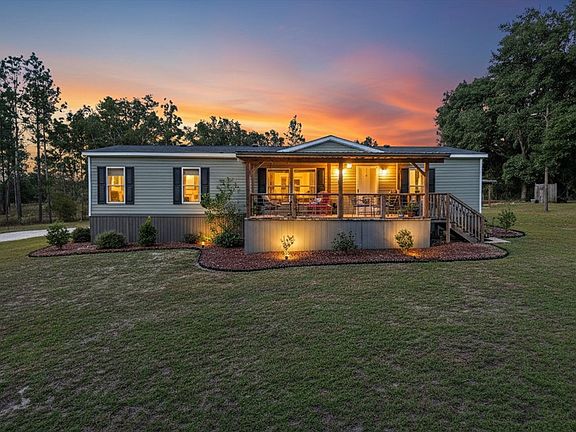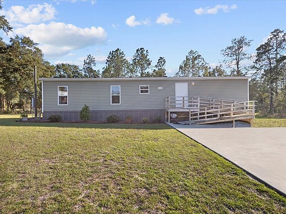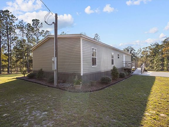 GREAT LOCATION on PAVED ROAD, CR 340! This like new 3 BD/2 BA Live Oak home was built in 2021 and has been well cared for. The open living, dining & kitchen area is roomy and makes good use of the 1512 SF of living space. The split plan home has a small island in the kitchen and vinyl and carpet floors. The 2 additional bedrooms are roomy and have walk in closets. The Master Bath has a walk-in shower and large closet. A large covered porch on the front of the home is perfect for seeing over the property and watching deer and squirrels. Because it sits high on the property, it also allows for a nice breeze on most days. Out the back door, there is a nice sized concrete slab for parking or entertaining. a unique feature of this property is the additional building with covered parking that is used for a Guest House. It has a bathroom, living and bedroom w/closet. There is also one area with a refrigerator and sink with counters for use as a kitchen area. A washing machine and dryer are included as well. In addition, there is a pole barn for storage of tractors, boats, RVs or anything else you may need to store. The 4"well at this property was put in new in 2021. The lovely property has a mixture of open area near the home and some larger oaks and pine trees toward the front of the property. All conveniently located on paved road just minutes from town! Come see to appreciate all this property offers!