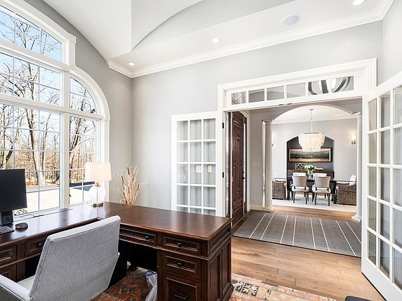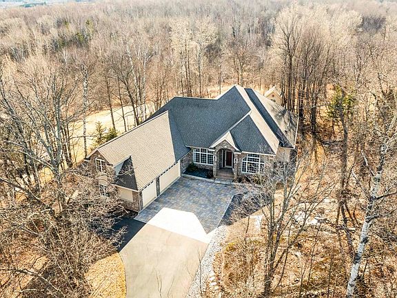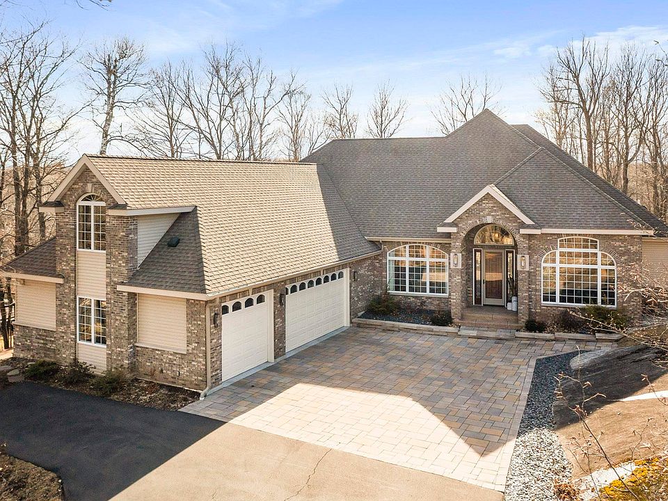 Welcome to this incredible executive home located in Northridge Estates. Upon pulling into the paved driveway you’ll delight in the professionally landscaped yard nestled within and around the naturally occurring native bedrock and the overflow parking space to the left of the 3 car garage. Stepping through the grand entrance you’ll immediately be impressed by the dome ceiling anchoring a large iron chandelier, the stately rounded columns defining the spacious formal dining room with buffet alcove, the French doors with transom windows leading into the perfectly positioned office/library, and the vaulted living room with new iron chandelier, built-in gas fireplace, and wall of custom cabinetry designed to store T.V, electronics, and more. The custom chef’s kitchen with gas stovetop, granite counters, island with extra seating, custom cabinetry, has a wonderful informal breakfast area enveloped in windows and two full glass doors; one leading to private patio overlooking the custom pond and yard, and the other leading to a deck for sitting or grilling. The many custom details extend into the primary bedroom with tray ceilings, French doors leading to the patio, walk-in closet with washer/dryer and organizers. The presidential private bathroom en suite has double sinks, soaker tub, and walk in tiled shower! Two additional large bedrooms, full bath, powder room, and laundry room complete the main floor. Don’t miss the bonus level above the heated three car garage that provides the perfect 4th bedroom, artist/craft studio, or second office! Lastly, you are sure to enjoy the meticulously maintained backyard with garden shed and 4+ miles of trails owned by the neighborhood and protected by the Minnesota Land Trust. Be prepared to fall in love the minute you enter this gorgeous meticulously maintained home.