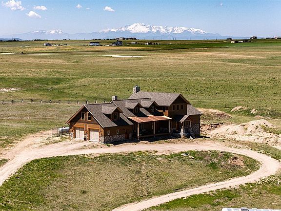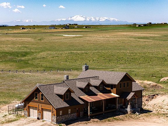 Incredible custom home with insulated concrete block and timber frame construction located in Rustlers Canyon! This homes architectural design and artistic finishes are not something you find everyday. The upgrades in the home include quartz countertops, hickory and maple cabinetry, ash flooring throughout the main level, Pella windows, hand troweled walls and Douglas fir trim and doors. The spacious kitchen features upgrade stainless steel appliances including a dual gas oven, Bosch dishwasher, spacious island with butcher block c-top, copper sink and antiqued maple cabinetry. The well designed mud room offers a slate tile dog wash, powder bathroom and tons of storage. The primary bedroom offers a luxurious 5 piece bathroom and master closet plumbed for ventless washer and dryer. The Great room features a massive rock fireplace and 25 ft ceilings with Douglas fir timber framing. The mail level offers two bedrooms and four bathrooms and the upper level features a loft that overlooks the Great Room, an additional living room as well as two bedrooms and a full bathroom. The basement finish is near completion and ready for fixtures, flooring, paint and trim. The basement floor plan features a large family room, bedroom, theatre room, game room, bonus room and is roughed in for a bathroom. The attached two car garage is oversized with radiant floor heat and frost free hot/cold hydrants. The lot has amazing rock outcroppings as well as Pikes Peak Views to the west and views of the running creek valley to the east. There are two pads ready for barn and shop with electrical and water already stubbed in. This home needs the finishing touches but is truly a rare find and is located in one of the most beautiful areas Elbert County has to offer! Showings start February 15th! Buyer to verify all information.
