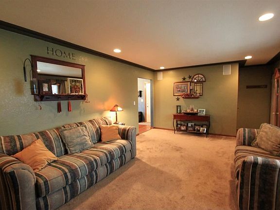 Superb style offered here! This stunning ranch style home is located in a quiet neighborhood situated just on the edge of town. This quality home features numerous upgrades and amenities found throughout. The main floor boasts a spacious living room that provides a cozy corner fireplace, an expansive picture window and is open to the dining room and kitchen. The remarkable kitchen is sure to impress with luxury granite counter tops, rich wood tone cabinetry, stainless steel appliances and a breakfast bar. The dining area is open to the kitchen and showcases gorgeous wood flooring and is an ideal space for everyday meals or entertaining family and friends. The dining area also allows access to the private rear deck and yard. The main floor features a spacious master bedroom with a large closet. The lower level provides even more living space with a huge family room and rec area. The lower level also features an additional bedroom and full bath. This property also includes an attached double garage, a central vac system, a sound system. Other updates include a new roof, new siding, stone accents outside and much more. This one won't last long. Act quickly!