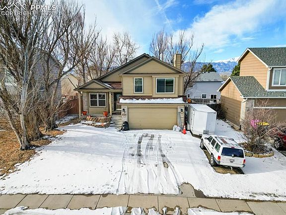 Nestled in the established neighborhood of Constitution Heights, this move-in-ready, 3 bed, 2 bath tri-level home awaits your discovery. Recently infused with a breath of fresh air, the upper level boasts brand-new, plush carpeting and the entire home is freshly painted. As you step inside, you're greeted by vaulted ceilings and hardwood floors that extend throughout the living room and down into the family room. The updated kitchen offers granite countertops, complemented by a stylish tile backsplash. The tile flooring underfoot is both beautiful and practical, making cleanup a breeze. The kitchen is equipped with tile floors, tile backsplash and black/stainless appliances. The lower level family room has a fireplace and walks out to the fenced rear yard with patio and hot tub gazebo. One of the most enchanting features of this home is its mountain views. Colorado's majestic landscape is your backdrop, providing a daily reminder of nature's grandeur. This home also boasts central AC, ensuring your comfort in every season. And when it comes to location, you couldn't ask for more. Positioned close to Peterson Space Force Base, a quick drive to Fort Carson, and just minutes from the Powers corridor, you have easy access to shopping and entertainment options. Experience the best of Colorado living in this beautifully updated home, a perfect blend of comfort, convenience, and charm.
