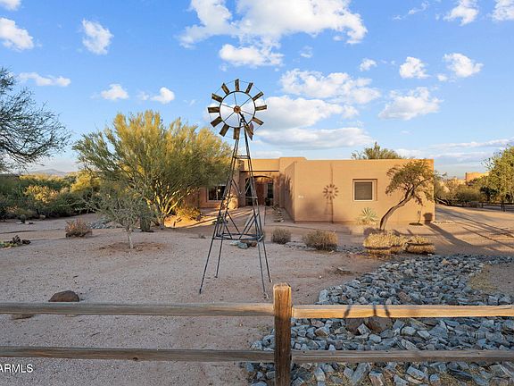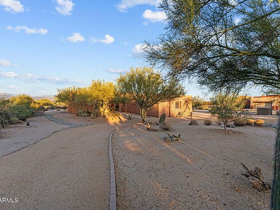 Escape the noise without leaving convenience behind—this Scottsdale gem offers the best of both worlds! Located on a spacious corner lot, this 3,686 sq ft 3 bed, 2 bath home (plus a den!) features clear skies, starry nights, and stunning Four Peaks views. The 4-car garage is accessible via a separate driveway, while a circular drive welcomes guests to the front entrance. With ample space to build, raise horses, or pursue your favorite hobbies, the possibilities are wide open. The back patio is ideal for dining, entertaining, or simply soaking in the peaceful desert landscape. A rare blend of tranquility and accessibility—country feel, city convenience!