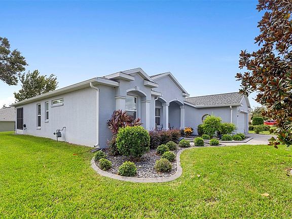 NEW ROOF! This beautifully landscaped property offers a 3-bedroom, 2-bath split floor plan with an open-concept layout, outfitted with crown molding and designed for modern living. The master suite is a private retreat, featuring a walk-in shower, double vanity, and a custom walk-in closet with a organized well thought out closet system. The gourmet kitchen boasts a large island with granite countertops, solid wood cabinets, stainless steel appliances, and stylish backsplash, complemented by a breakfast nook. With plenty of room the separate but (still visbile) living and dining rooms makes it great for entertaining. There is also a spacious bonus room ideal for a family room, media room, office or can even be converted into a 4th bedroom. Additional highlights include a laundry room with abundant storage, water softener, and a 2-car garage. Relax year-round in the enclosed patio under air, complete with walls of windows for natural light and motorized shades for privacy. Arlington Ridge is a 24-hour gated and guarded community offering championship golf, resort-style amenities, and low-maintenance living. HOA fees cover lawn care, high-speed internet, cable, and full use of amenities including two pools, hot tub, fitness center, movie theater, and more. Dine at the Chesapeake Grill & Tavern, enjoy walkable streets with sidewalks and lighting, and take advantage of the community’s prime central location—just minutes to shopping, restaurants, and healthcare, with easy access to Orlando, airports, and Florida’s coasts. Don’t miss this neighborhood gem—schedule your private showing today!