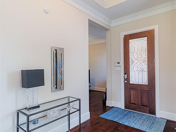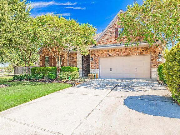 Gorgeous and bright David Weekley 1-story home with separate “casita” offers 3 bedrooms and 3.5 baths, tucked away on a quiet cul-de-sac in the highly sought-after Ashfield Gardens in Cinco Ranch, Katy. A gated entry opens to a charming courtyard between the casita and main home. Inside, enjoy a stunning open concept dining, kitchen, and living area with hardwoods throughout. The elegant dining room with built-in cabinets leads to the large island kitchen, a wonderful entertaining space for 5 or 6 seated as you whip up your gourmet dinner. It boasts granite counters, pendant lighting, stainless steel appliances, and a gas cooktop, and it seamlessly flows into the spacious living area with views of the beautifully landscaped backyard. The primary suite boasts