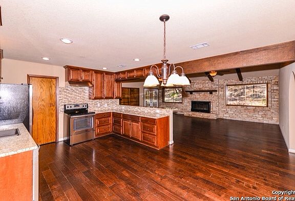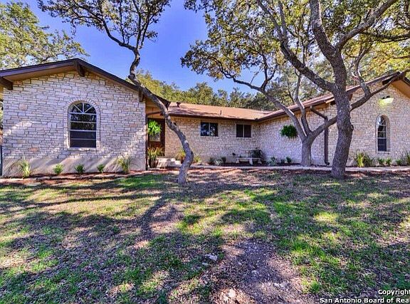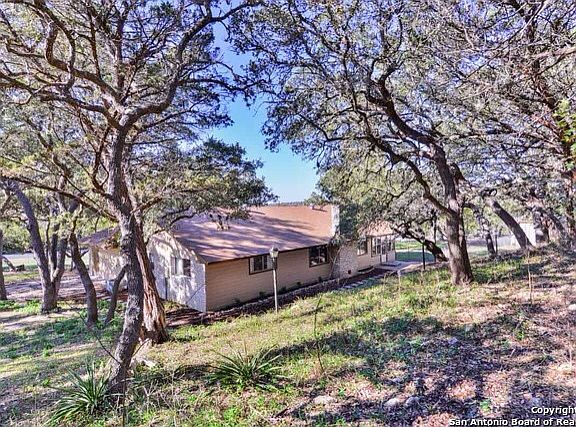 Fabulous location close to SA & Boerne amenities, Friedrich Park, Fair Oaks Ranch and in the Boerne ISD. This One story rock home was built 1974 set back on 1.42 acre corner lot is nestled amongst many beautiful Mature Texas Oaks. The setting lends itself to entertaining or just to enjoy the peaceful hill country. Owners added a walkway to have ease of walk around the perimeter of the home, extended the side patio & added a covered patio at back. The Sun room(glassed in porch) was added with walls of windows, two sliding doors for entry from both patios, window A/C unit keeps it cool in summer months. Gazebo cover added over the Hot Tub & side steps to the Workshop with a roll up door. There is an RV hookup accessible from the second gate at the side back of Property. Owner added two additional Storage units and a Greenhouse. The home's floor plan is open, many features include a family room w/ vaulted beamed ceiling, built in bookcase & rock fireplace w/heatilator. Kitchen connects to family room, separated by Breakfast bar & dining area contiguous. Appliances were all replaced post purchase & are included. Granite counters in kitchen and baths. Secondary bedrooms are at front entry w/full bath between w/ a new Step in Tub that was installed, a wonderful unit w/shower & spa features. Master suite is split & bath suite features 70's Roman Style Step down Shower. Bathroom remodeled to make for double vanity installed. Some minimal Closet hanging room still remain, large walk-in off Flex room. Laundry room is inside next to the Flex room that can be the 2nd living or a Hobby room, there is a large walk-in closet for the master. Garage 3-car oversized w/A/C unit to keep cool, flat screen remains. Auto gate entry at side w/addtnl manuel gate @ side back to access RV hookup. Property is on Private Well & Septic System. Don't miss the opportunity to make this one your own, the possibilities are endless...List of improvements available. HOA is Voluntary no current information available...