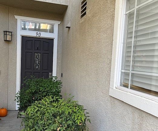When I say MOVE IN READY it truly is.. Recently upgraded: New flooring and baseboards throughout, Newly redone Kitchen with solid-surface countertops. Guest bath has newly installed Pedestal sink. Primary bath is upgraded with Newer Dual Sink vanity, Primary Shower features an upgraded walk in shower surrounded by Beautiful Tile and Upgraded Shower Doors. Ceiling fans installed throughout the home also upgraded are the newly installed energy efficient sliding doors.. The yard is larger than your average. Pavers and artificial turf, to further enjoy the yard with friends and family, a Built In BBQ with small work station has been added. The unit is centrally located in the heart of it all. Walking distance to two shopping strips (Best Buy, Trader Joes, Lowes, Hobbie Lobby, Resturants, just to name a few) The unit is bright and roomy, the fireplace calls out for COZY on those cool days. The maintenance on this Townhome is beyond perfect making it the Move In ready unit. Direct access to your Large two car garage which also shows organization. The complex offers access to HOA amenities, a beautiful Pool and a well manicured grass area as well as direct access to the Valencia paseos.