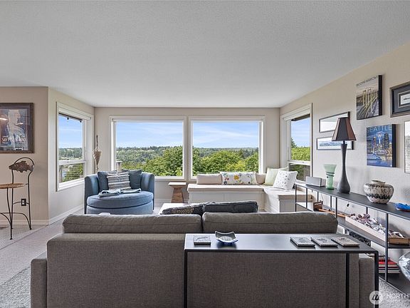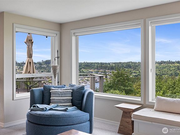 Western facing gem with long views of the Harbor & Olympics and tons of updates throughout. Main floor primary w/ private view decks and a spacious open concept Living Room, Dining Room & Eat-in-Kitchen, along with the Deck, offer incredible year round Harbor views and sunsets! Laundry and oversized 2 Car Garage also on the main. Lower level with the 2nd gas fireplace, huge Family Room, 2 Bedrooms, a full Bathroom & great Storage/Craft Room. Lovely mature landscaping. Short drive to Downtown Gig Harbor and all of its amenities.