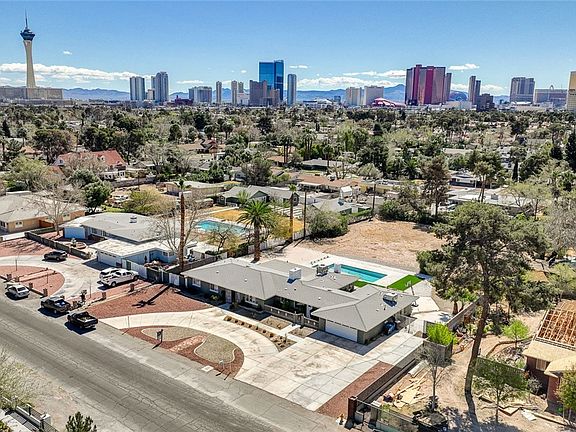 ***HISTORIC** EAST TO SHOW! RARE McNEIL ESTATES SINGLE-STORY MID-CENTURY HOME ON 1 ACRE! No HOA, RV parking, & ½ acre palette behind the home to create your dream space; Casita/Garage/Workshop/Studio, use your imagination! The backyard oasis features a PebbleTec heated pool/spa, geometric turf inlays, & a covered patio with front-to-back access. Fully remodeled interiors blend historic architecture with modern elegance, featuring neutral tones, open-concept living, & abundant natural light. A grand front entry offers panoramic views of the entire lot, while the vintage wood-burning fireplace adds timeless charm. Designed for entertaining, this home boasts a circular driveway, two-car garage, and extensive parking options. The chef’s kitchen is a standout with LG stainless steel appliances, including gas cooktop island with ceiling fan, double ovens, garden windows & stone accents, perfect for cozy dinners or gourmet feasts. Spacious bedrooms & just minutes from the Las Vegas Strip!