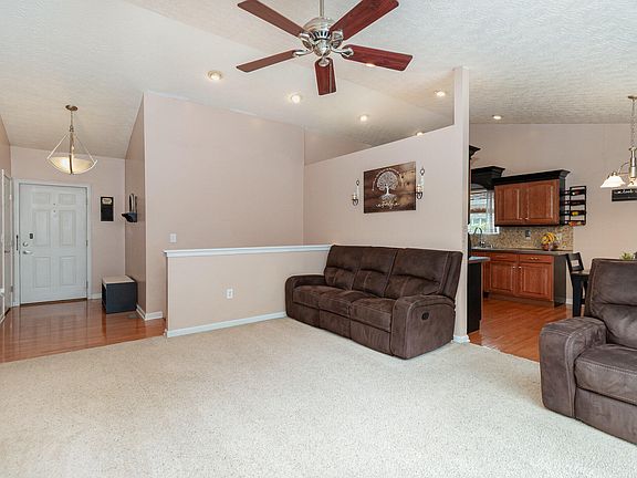 Welcome to your dream home! This charming ranch retreat is nestled on a peaceful .3273 acre fenced lot surrounded by mature trees, offering privacy and natural beauty. Boasting 3 generously sized bedrooms & 2.5 baths, this home offers comfort, functionality, & style. Step into the light-filled Great Room features soaring cathedral ceilings—perfect for relaxing or entertaining. The open layout flows effortlessly into a well-appointed kitchen & dining area, making everyday living a breeze. Downstairs, the fully finished lower level is a true showstopper! Enjoy movie nights or game day in the expansive family room, break a sweat in your private fitness room, or let your imagination run wild in the flex room—ideal as a 4th bdrm or study. The LL also includes a stunning wet bar, a large 1/2 bath, & a spacious laundry room. Step outside to your backyard oasis where a patio and maintenance-free Trex deck invites you to host unforgettable gatherings or simply unwind in the serenity of nature. You will enjoy the expanded parking area leading to the 2-car garage. This home combines modern conveniences with cozy charm—and it's all just waiting for you. Schedule your private showing today!