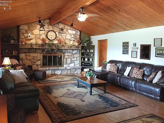 MOTIVATED SELLERS! HURON TOWNSHIP! 5 +/- ACRE SECLUDED ESTATE! 4 BR., 3 1/2 full bath home w/almost 4700 sq.ft of living space between the 1st floor & lower level walk-out featuring a 16x32 in-ground pool w/cabana & multiple decks & patios. Great room w/WBFP, built in bookshelves, tongue & grove knotty pine ceiling & Bay window. Big eat-in kitchen w/oak cabinets, appliances, built in storage, 10x7 walk-in pantry/dark room w/hot & cold water. Formal dining room w/walk-out to upper deck. Master suite w/built-in Firelands clothing storage cabinetry & full bathroom. The other 3 BR'S., are good sized w/full bathroom close by. The open lower level has 2 finished rooms 28x24 & 26x32, wood burner, small kitchen area & 2 walk-out sliding patio doors. The lower lever also has an unfinished 37x21 storage/utility room & 22x16 workshop. Additional features are central air, 2 car attached garage, 20x28 storage building, 26x48 barn, 220 amp service, public water, HUGE back yard w/fruit trees & more.