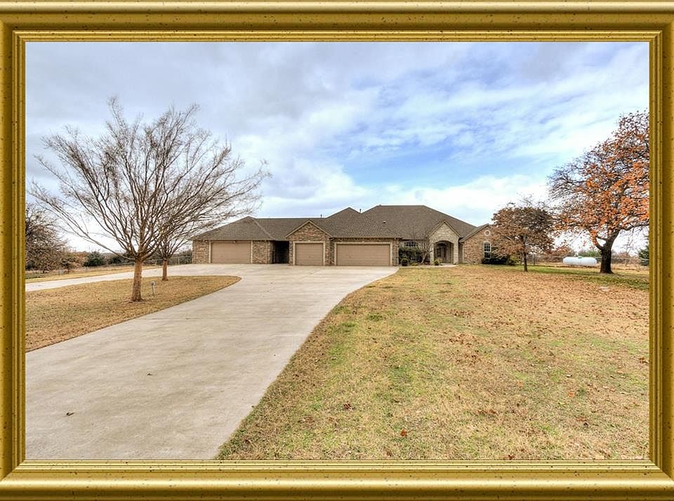 BUSTED CONTRACT OVER BUYER FINANCING ONE DAY BEFORE CLOSING!! CAN CLOSE QUICKLY!! A RARE OPPORTUNITY TO OWN THIS HOME WAY BELOW MARKET VALUE AWAITS YOU!! Spacious home on 10-park-like acres. The kitchen has a breakfast bar, triple convection self-cleaning oven, microwave, 5-burner cooktop, pullout shelving in most of the cabinets, and large casual eating area. Granite counters throughout the home. Bedrooms all have good size walk-in closets. Master BR includes tray ceiling, crown molding, and an en suite. The master bath has 2 separate sinks, whirlpool, shower w/2 shower heads,large walk-in closet. Large LR with FP. Also a study. Door from the eating area leads out to a 13'x38' screened-in porch; then on outside is an outdoor fireplace and large patio. There is a storm shelter on the property as well as a heated and insulated 30'x50' workshop and garage doors on both ends; or consider it a garage for anything with wheels. All garages have concrete epoxy flooring. Horses allowed.