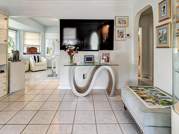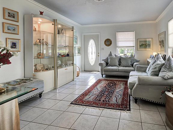 Huge tropical yard with fruit trees. White kitchen with an island and quartz counters. Very large master bedroom with great closet space Screened porch with utility room and BBQ area. Electric awning. Circular driveway. Bonus separate room/office.