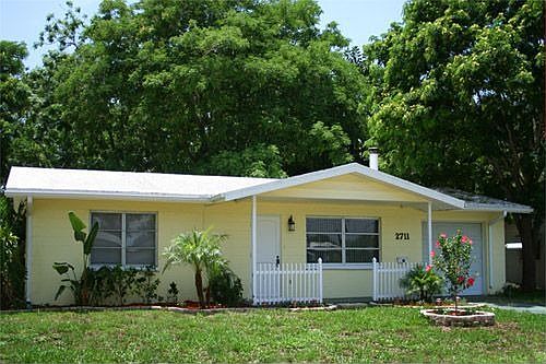 This charming two bedroom home with a one car garage and wood burning fireplace features a fully Updated Bathroom complete with Corian counter and decorative listellos. French doors from the dining room open to the additional air conditioned square footage found in the enclosed flex room which can be used as a Florida room, family room, or den. Dining room accents include chair railing and decorative designer paint. Lots of storage can be found with two hall closets, additional cabinets in the flex room and garage. Kitchen overlooks the flex room and breakfast bar. Kitchen features newer white cabinets, newer stainless steel range, newer convection microwave, and a two drawer Kenmore dishwasher. Water Heater 2016, Air Conditioner 2012, and Roof 2010. The Tuff shed provides additional storage for the lawn equipment and tools.